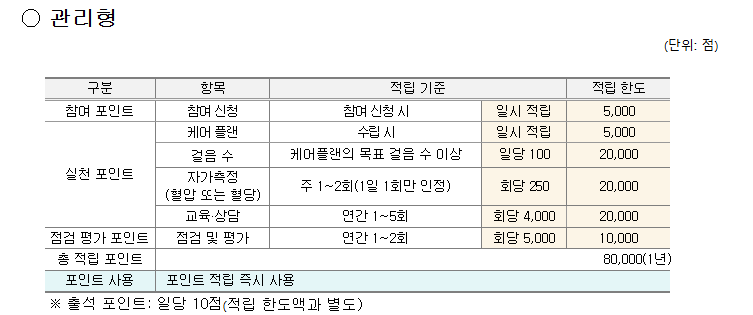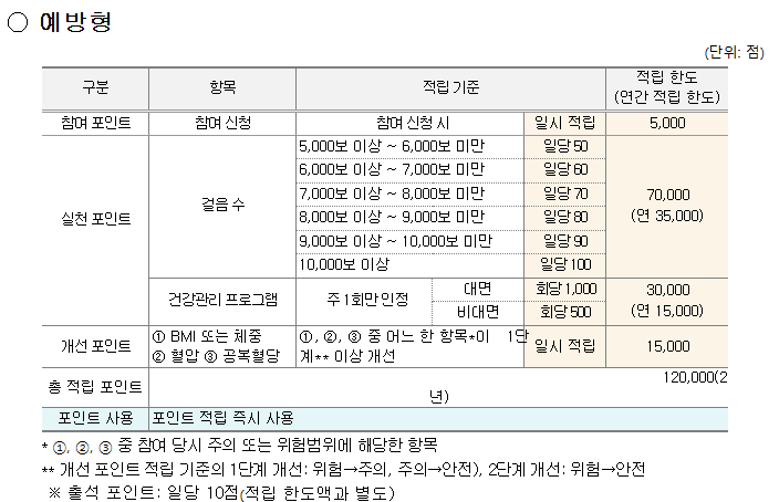 - 건강관리 실천 시 최대 8만 포인트 적립 가능